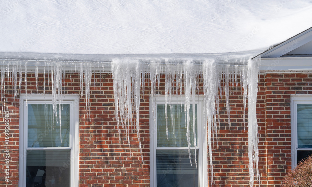 Fototapeta na wymiar - winter house with icicle and snow on the roof.