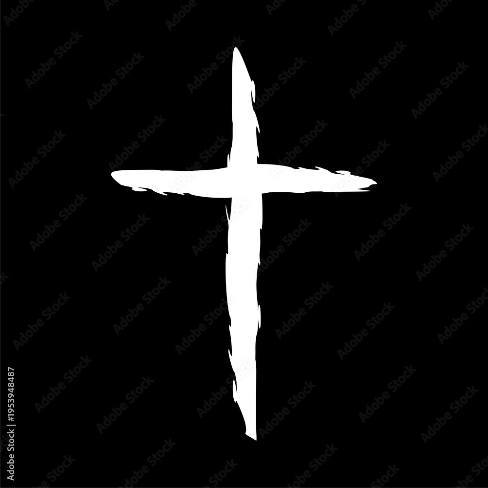 Fototapeta na wymiar - Christian cross hand drawn icon isolated on black background.