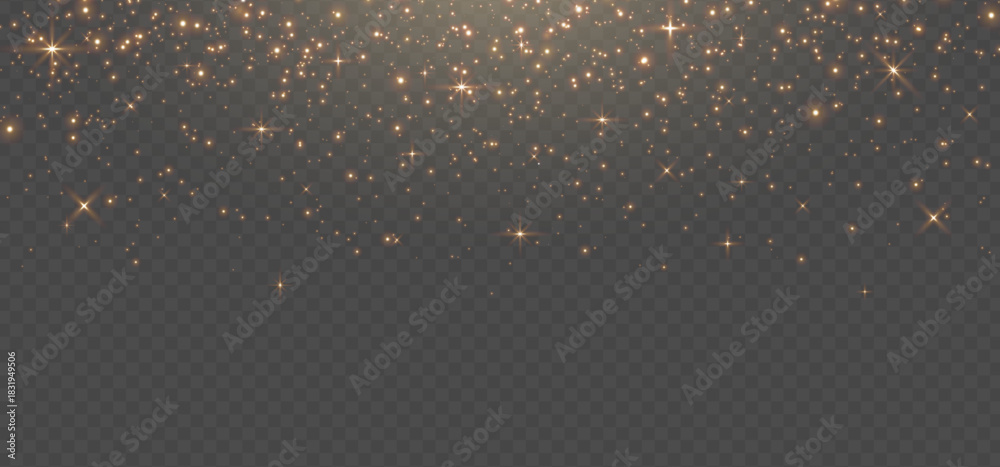 Fototapeta na wymiar - Gold glitter light banner. Magic dust background. Star particle bg. Christmas Holiday golden confetti. Fairy bulb. Glow shine bokeh. Winter Celebration frame. Luxury party. Vector illustration.