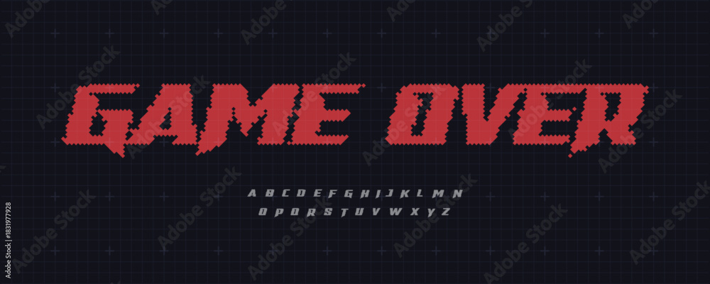 >Fototapety na wymiar>Wybrane motywy - zobacz więcej !>Kolej>8bit Game Over Font Logo Alphabet Video Game Pixel Arcade Letters Set Modern Typography, Game Typographic Design for Title Text, Typo Poster Headline, Type Symbol Logotype. Vector Typeface