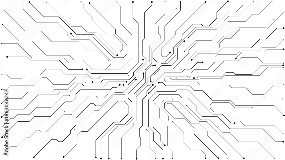 >Fototapety na wymiar>Wybrane motywy - zobacz więcej !>Kolej>White electronic motherboard pattern with digital lines and connections. Abstract tech background featuring semiconductor design, futuristic elements, and modern circuitry layout. Digital illustration