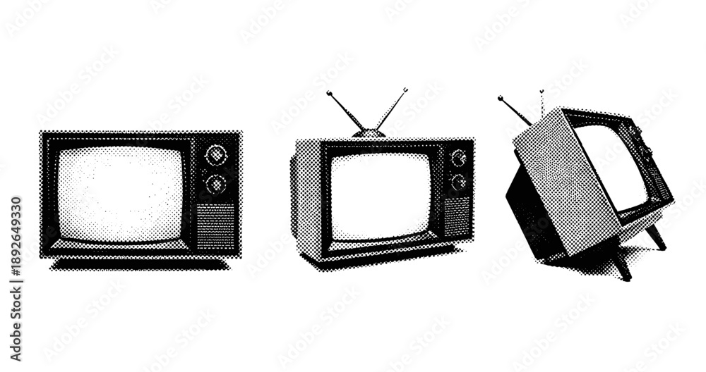 Fototapeta na wymiar - Set of vintage televisions with antennas in halftone style.