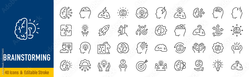 Fototapeta na wymiar - WebBrainstorming web icons in line style. Brain, idea, smart, creativity, skill, collection. Vector illustration..