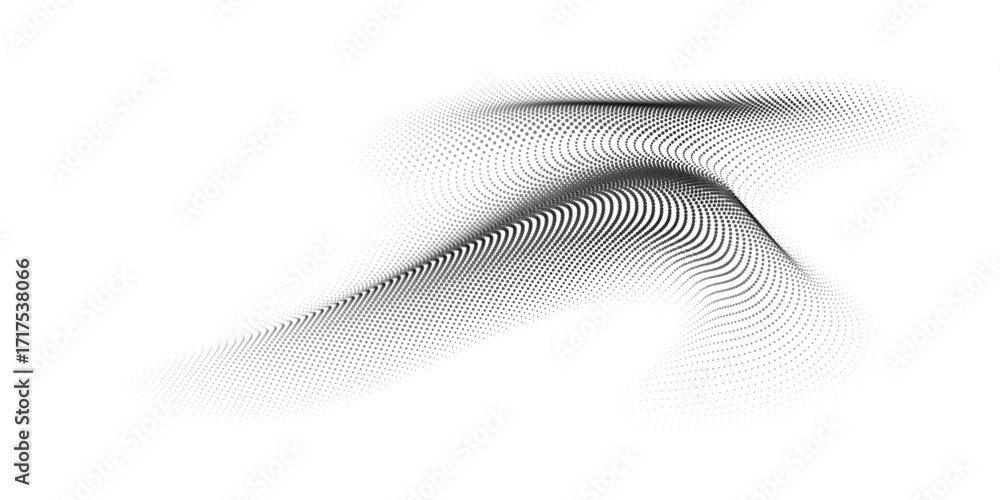 Fototapeta na wymiar - Flowing dots particles wave pattern 3D curve halftone black gradient curve shape isolated on transparent background. Vector in concept of technology, science, music, modern..