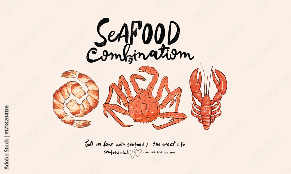 Fototapeta na wymiar - Lobster, crab and shrimp fish artwork for t shirt print, poster, sticker and other uses..