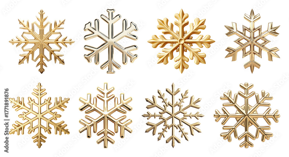 Fototapeta na wymiar - PNG Golden snowflakes elegant winter, element set on transparent background.