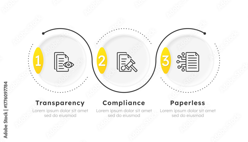 Fototapeta na wymiar - Business processes digitization infographic line circles. Innovative technology in commercial activity. Editable thin line icons diagram process with 3 steps. Montserrat-SemiBold, Regular fonts used.