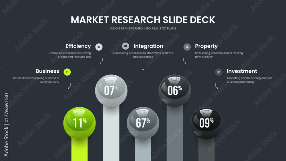 Fototapeta na wymiar - Corporate Performance Five Step Diagram Slideshow Layout. Simple Introduction 5 Option Infographic Presentation Design. Product Proposal Frame Template Vector Illustration..