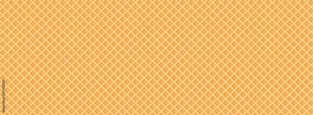 Fototapeta na wymiar - Wafer texture, waffle background, cream biscuit seamless pattern. Ice cone, sweet cake bg. Bakery dessert banner. Cartoon snack crisp wall. Abstract rhomb structure. Yummy border. Vector illustration.
