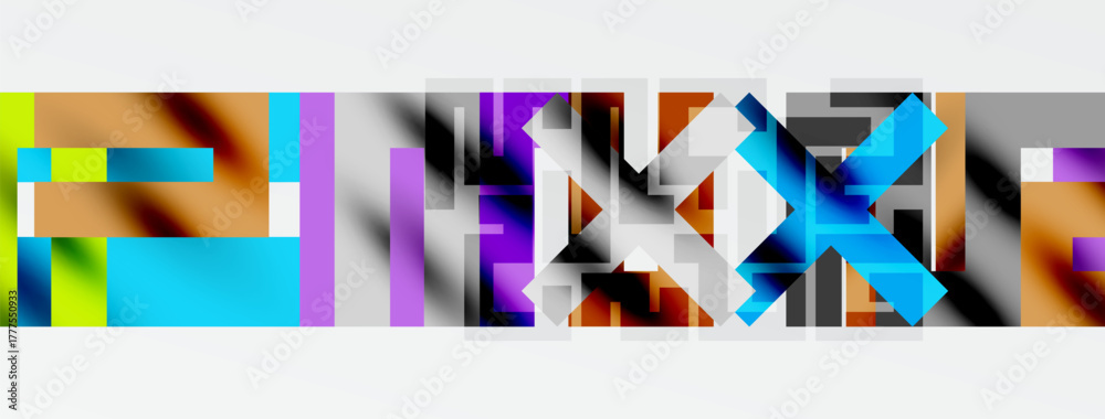 Fototapeta na wymiar - Abstract geometric shapes, vibrant colors, horizontal composition. Minimalist design, modern aesthetic, clean lines present..