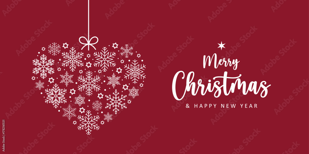 Fototapeta na wymiar - merry christmas greeting card with heart made of snowflakes vector illustration.