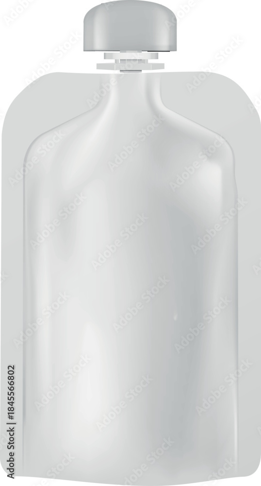 Fototapeta na wymiar - Blank flexible pouch up bag mockup with spout lid, vector realistic 3D doypack foil food or drink products bag packaging.