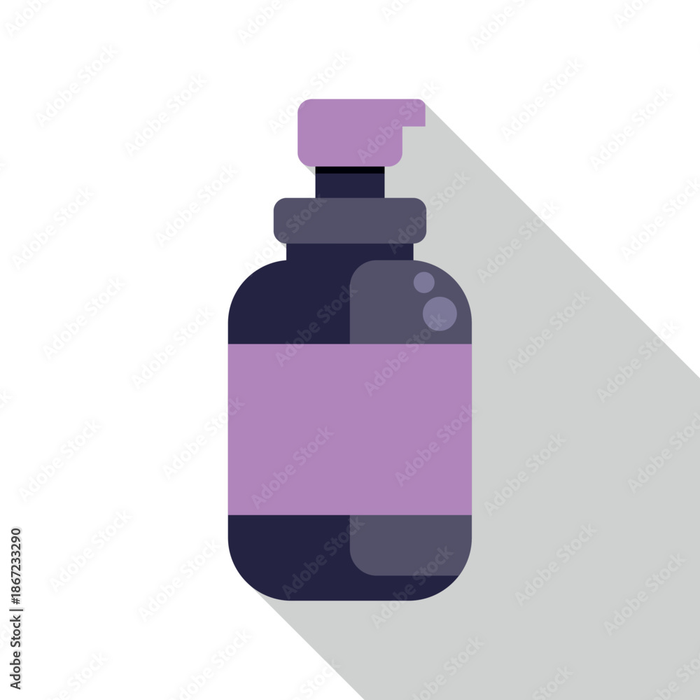 Fototapeta na wymiar - Dispenser bottle with a pump featuring a long shadow illustration on white background.