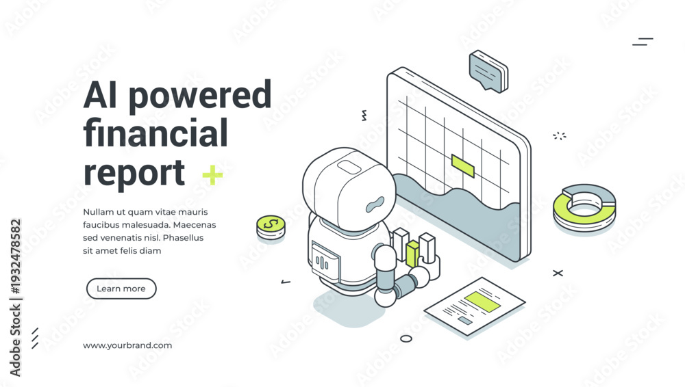 >Fototapety na wymiar>Wybrane motywy - zobacz więcej !>Konie>AI powered financial report isometric banner template. Artificial intelligence for business data analysis and audit service vector illustration. Modern web design for automation and fintech concept