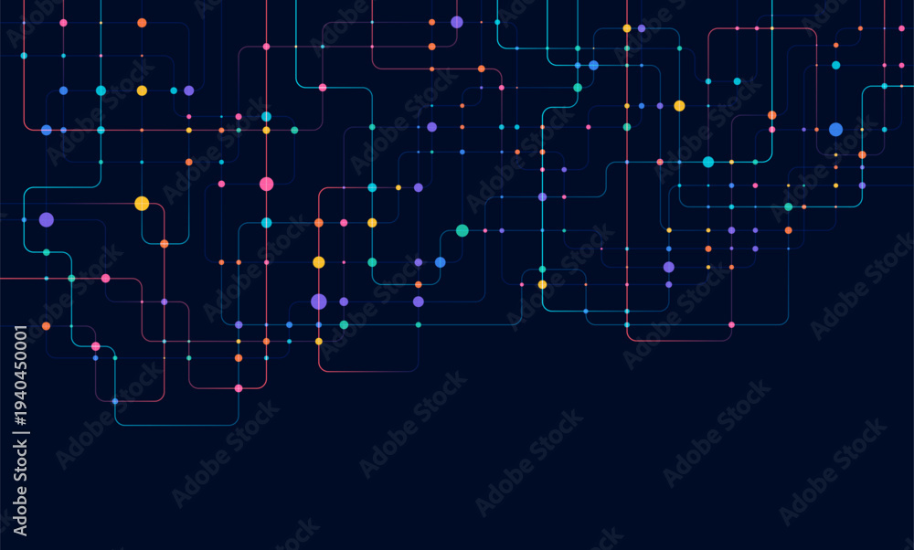 Fototapeta na wymiar - Circuit connect lines and dots. Network technology and Connection concept. Decentralized network nodes connections.