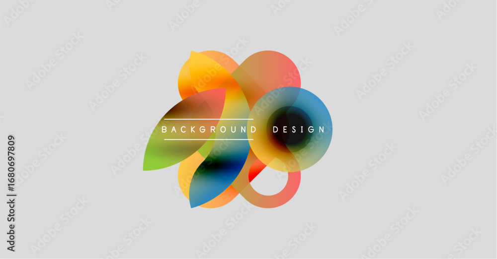 Fototapeta na wymiar - Abstract floral design. Overlapping colorful shapes create blossom effect. Light gray background provides contrast. Simple text labels present..