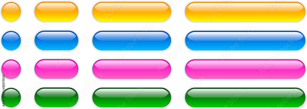 Fototapeta na wymiar - Multicolored buttons isolated, shiny glass navigation panel for website..