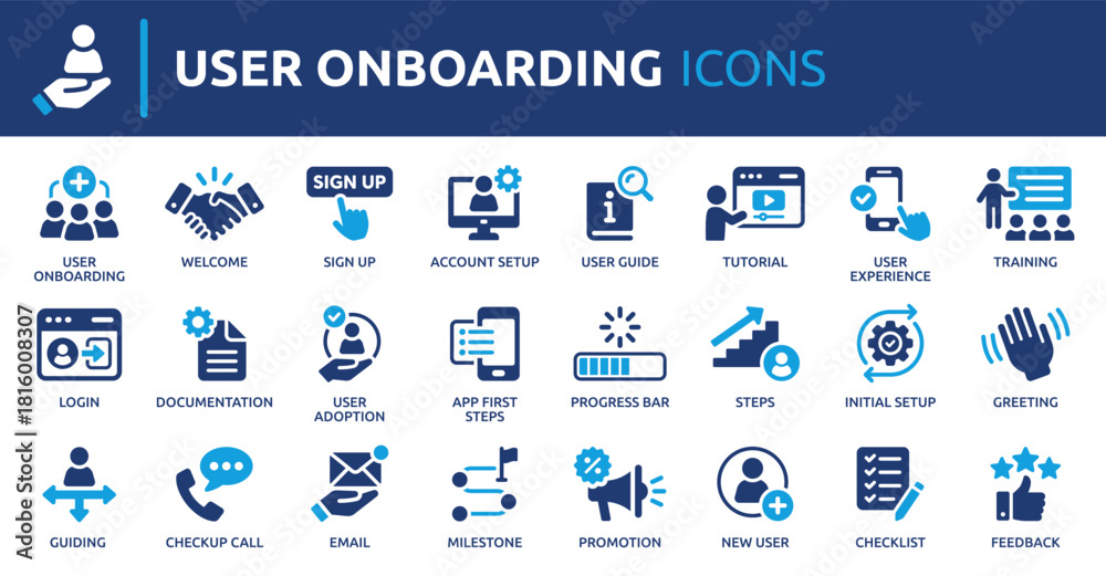 Fototapeta na wymiar - User onboarding solid vector icon collection, welcome, sign up, user guide, tutorial, UX, login and more..