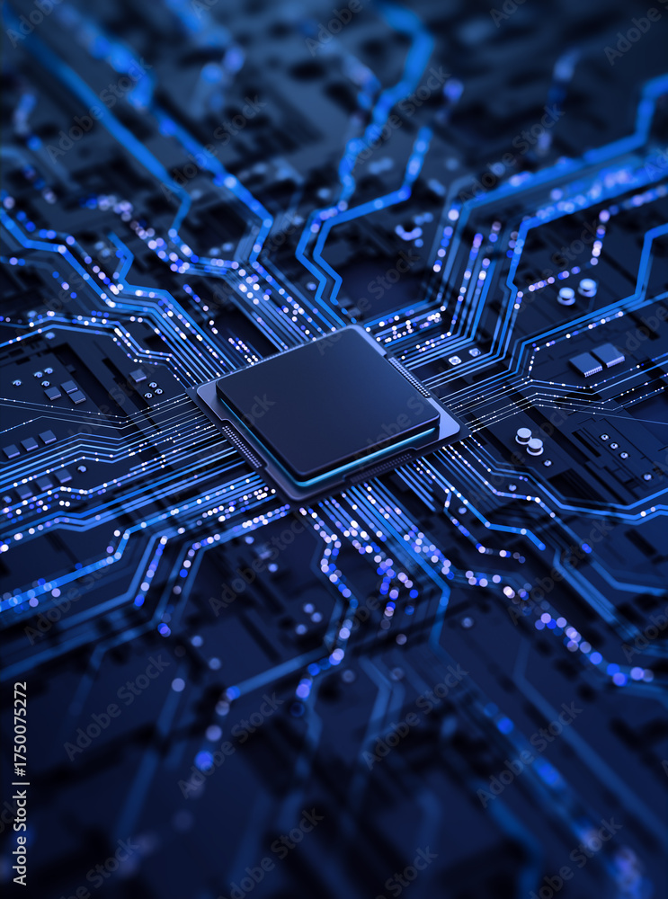 Fototapeta na wymiar - Processor chip on circuit board with copy space for design.