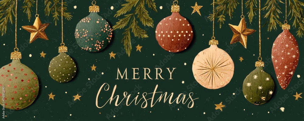 Fototapeta na wymiar - christmas greeting card with colorful decoration illustration.