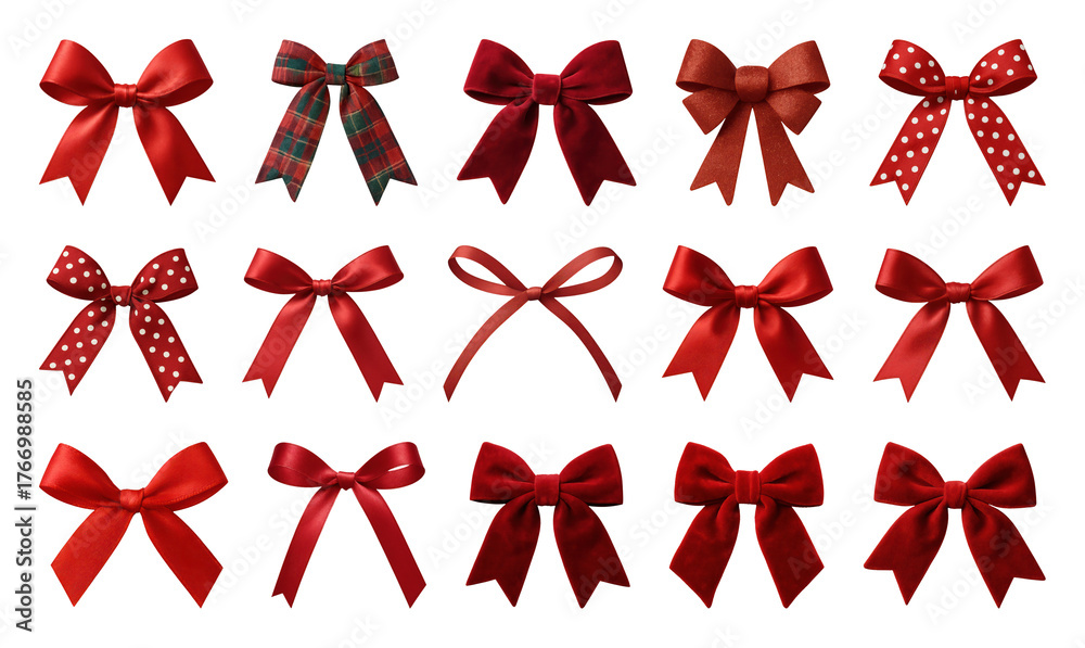 Fototapeta na wymiar - PNG Variety of red decorative bows, element set on transparent background.