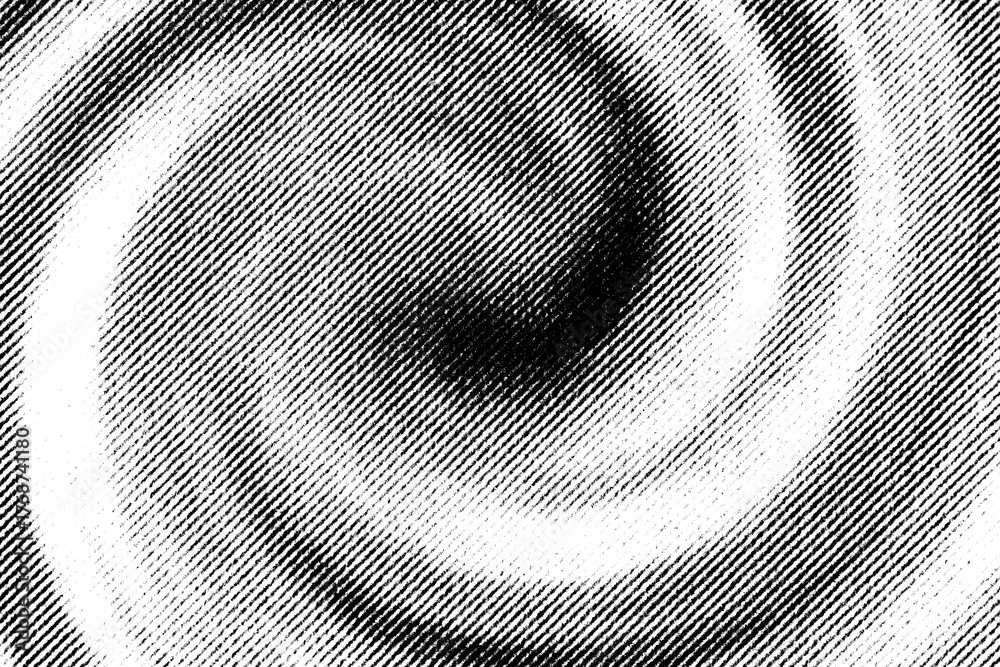 Fototapeta na wymiar - Abstract black halftone swirl texture with radial motion on transparent background. High-contrast monochrome dot pattern..