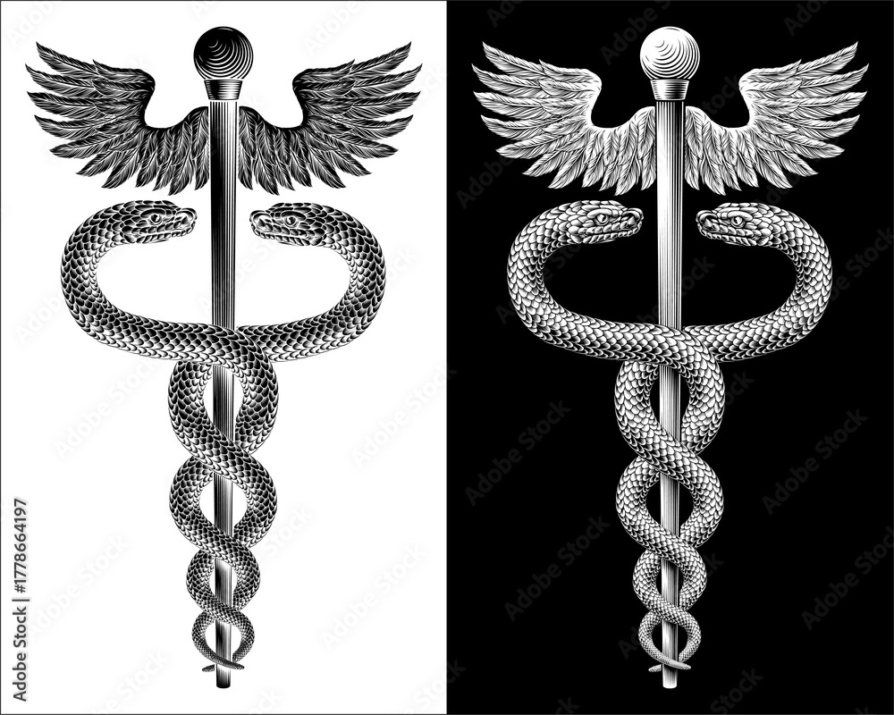 Fototapeta na wymiar - Caduceus Medical Asclepius Rod Doctor Symbol Icon.