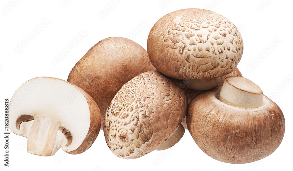 Fototapeta na wymiar - Heap of brown button mushrooms isolated.