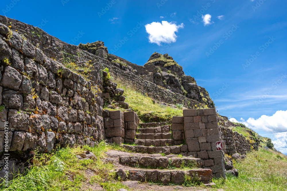 Fototapeta na wymiar - Inner View of Waqrapukara Archaeological Site in the Andean Highlands, Peru.