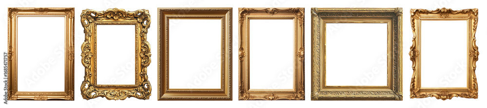 Fototapeta na wymiar - PNG Elegant gold frames collection, element set on transparent background.