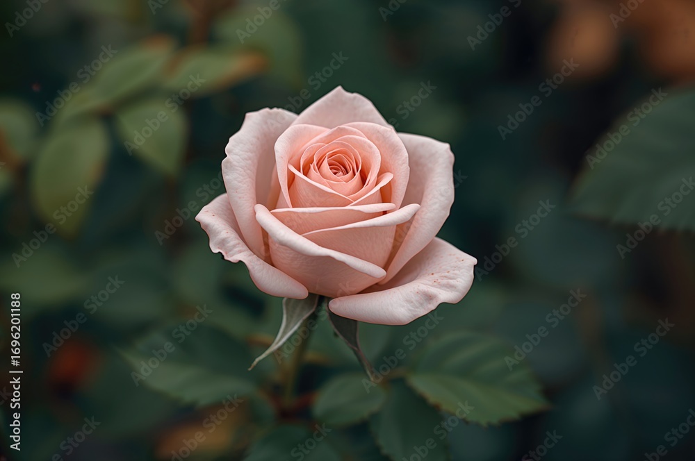 Fototapeta na wymiar - A pink-petaled rose blooming in the garden.