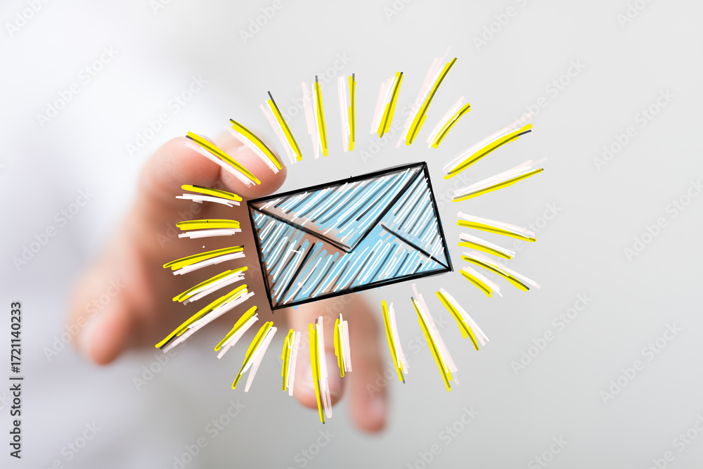 Fototapeta na wymiar - Bright, modern image of a hand interacting with a digital email icon. Perfect for communication, technology, and marketing concepts..