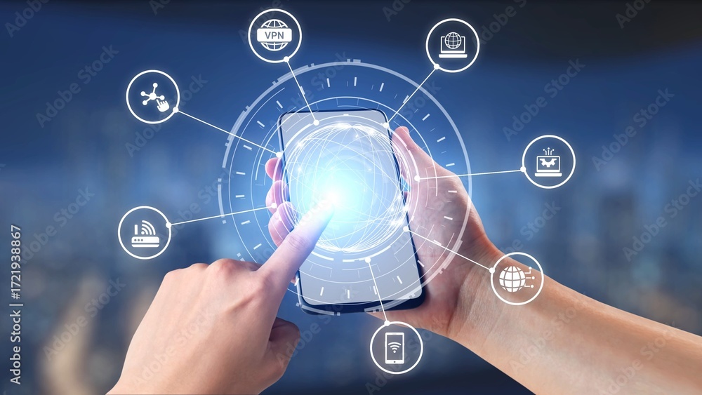 Fototapeta na wymiar - Communication network enables digital connectivity. A strong communication network supports data transfer, communication access, and global communication network solutions. Spire.