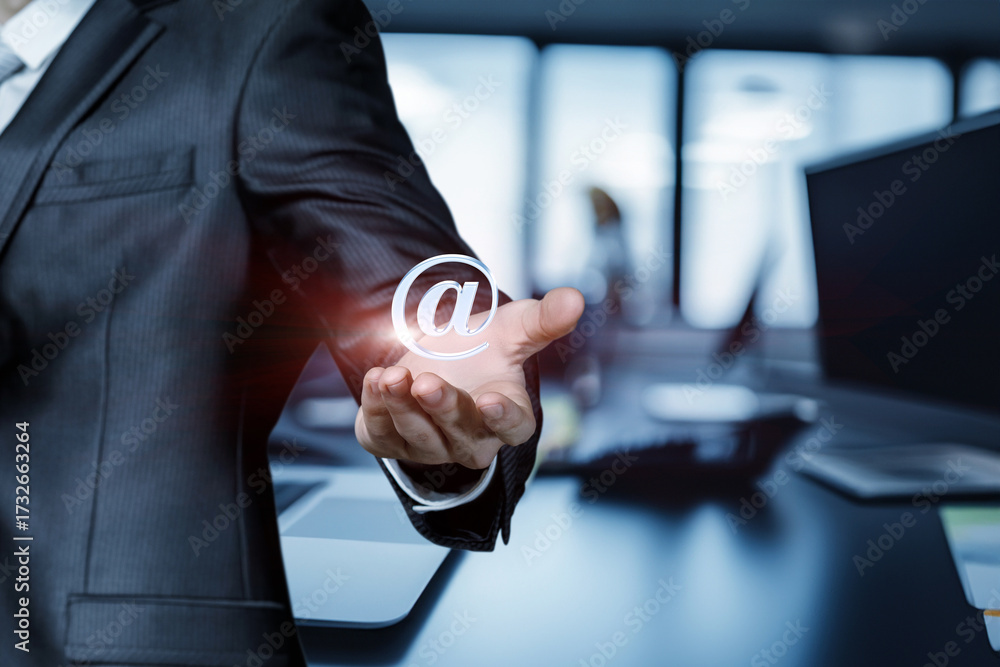 Fototapeta na wymiar - Business professional showcasing digital connectivity in office..