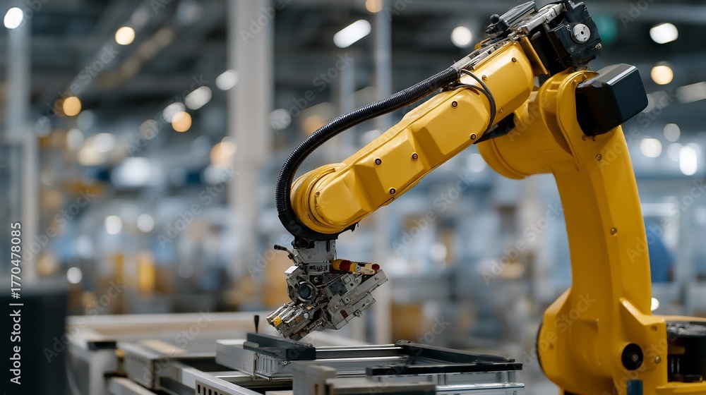 Fototapeta na wymiar - Robotic assembly line fabricating fuselage panels and precision parts for spacecraft, emotion of innovation and professionalism visible, symbolizing next-generation aerospace production, industrial.
