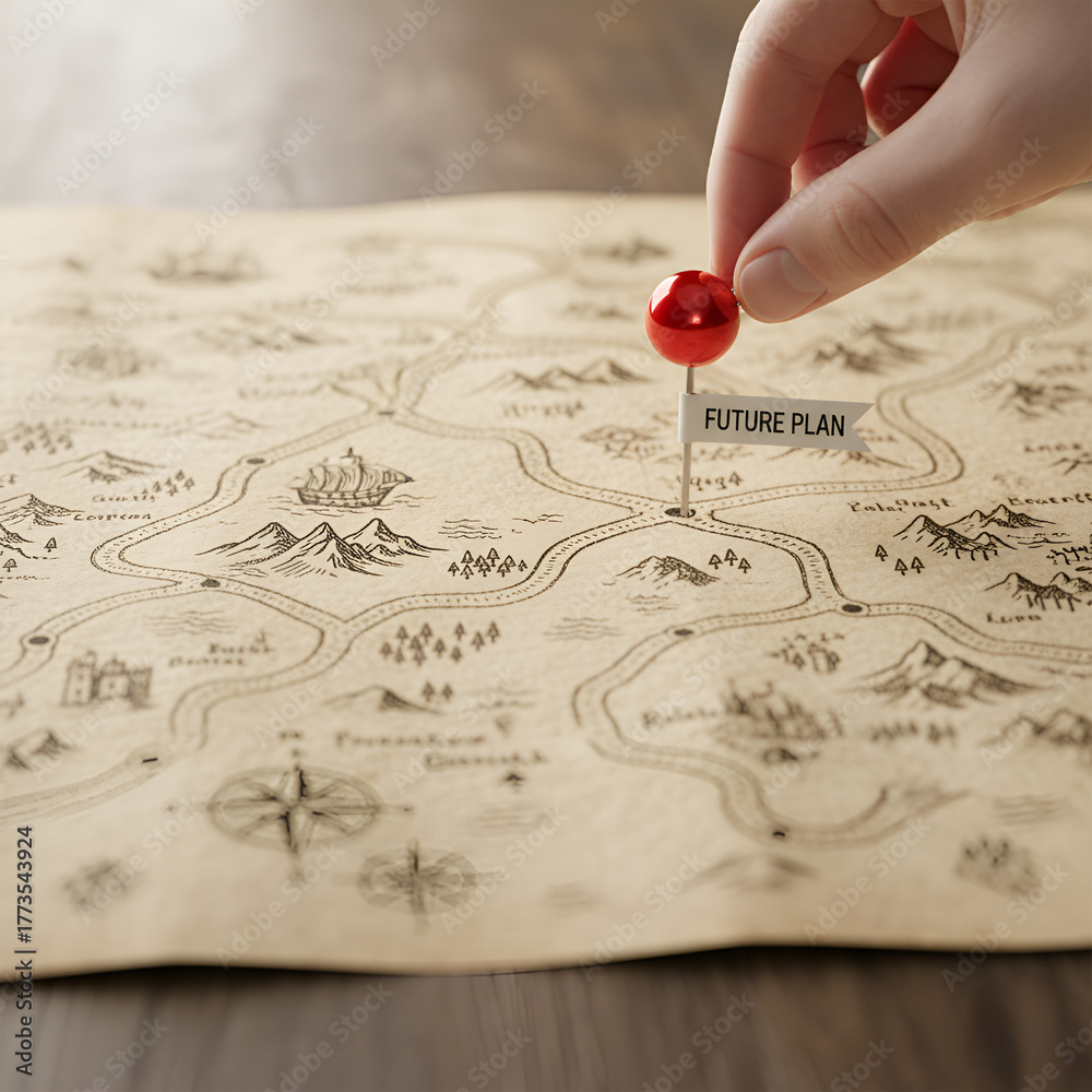 Fototapeta na wymiar - Pinpointing Future Plans on a Detailed Map.