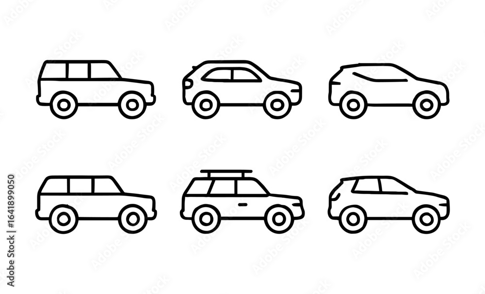 Fototapeta na wymiar - Minimalist line art suv car icons in black and white.