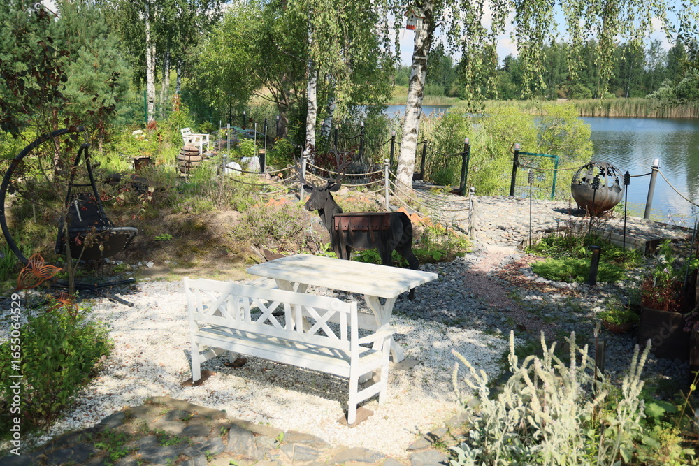 Fototapeta na wymiar - Enjoy a peaceful lakeside garden retreat with stunning, picturesque views all around.
