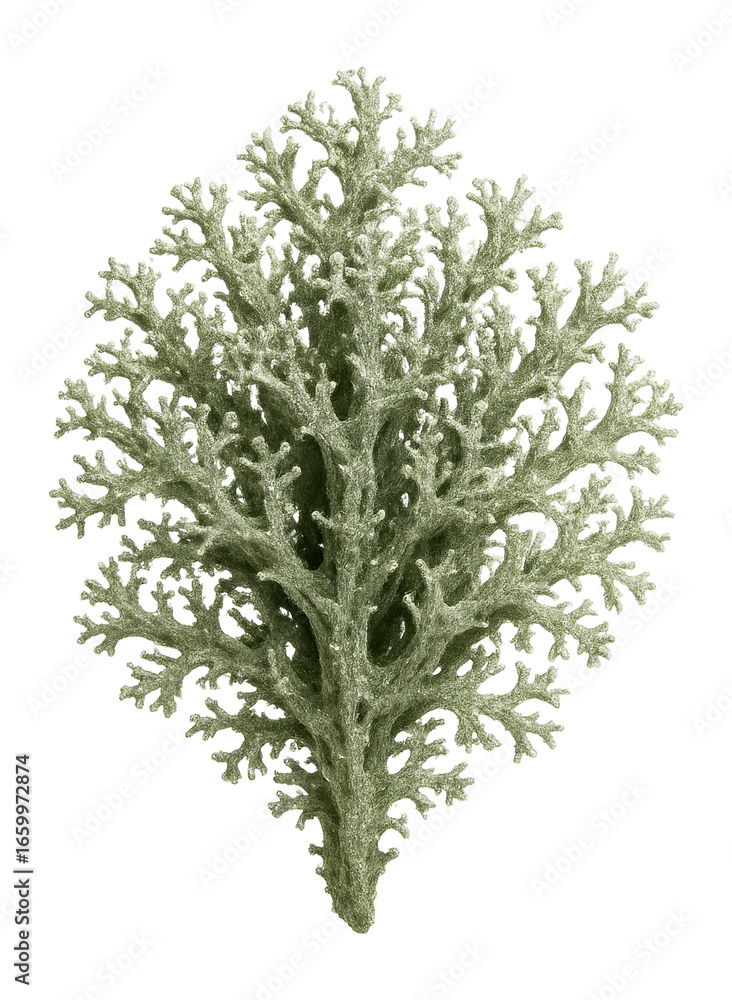 Fototapeta na wymiar - Oakmoss lichen with short, bushy branches and a pale greenish-gray color.