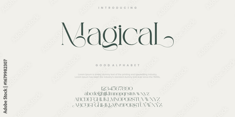 Fototapeta na wymiar - Magical Fashion font alphabet. Minimal modern urban fonts for logo, brand etc. Typography typeface uppercase lowercase and number. vector illustration.