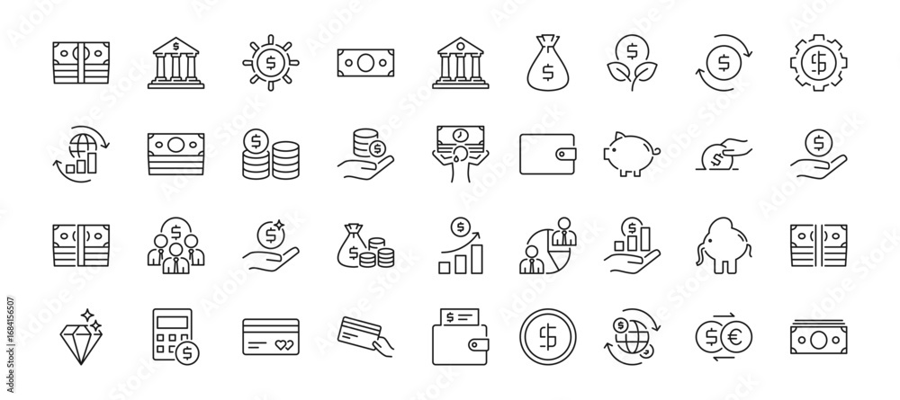 Fototapeta na wymiar - Financial Icon Set Containing bank, transaction, income, earning, money control and management vector icons.