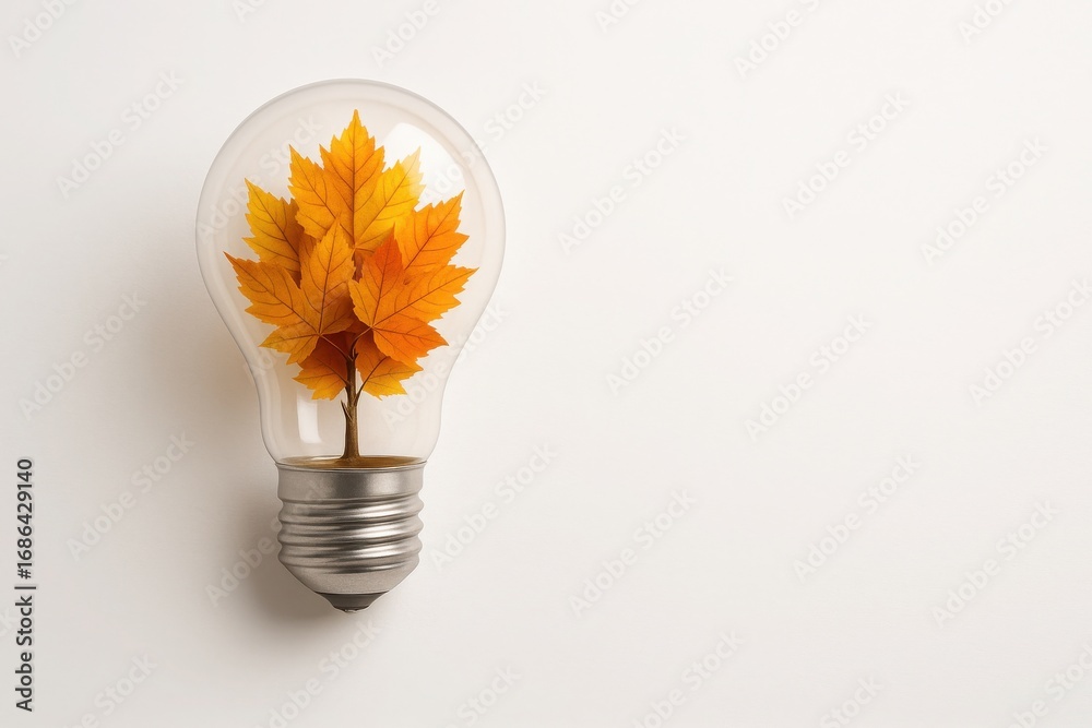 >Fototapety na wymiar>Wybrane motywy - zobacz więcej !>Lew>Light bulb filled with autumn leaves on white background with soft lighting and empty space for text creative concept for ideas innovation and back to school season