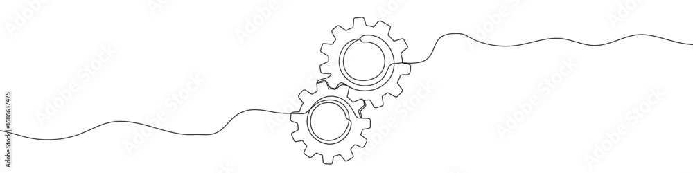 Fototapeta na wymiar - Two connected gears in one line art style. Gears drawing with editable black stroke on white background. Vector illustration..
