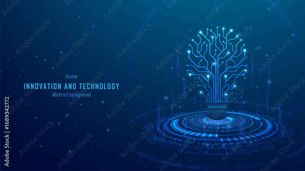>Fototapety na wymiar>Wybrane motywy - zobacz więcej !>Lew>Concept of Innovation and business innovative idea and solution technology. Circuit light bulb on abstract hi-tech future blue background. Analysis solution and development. Vector illustration.
