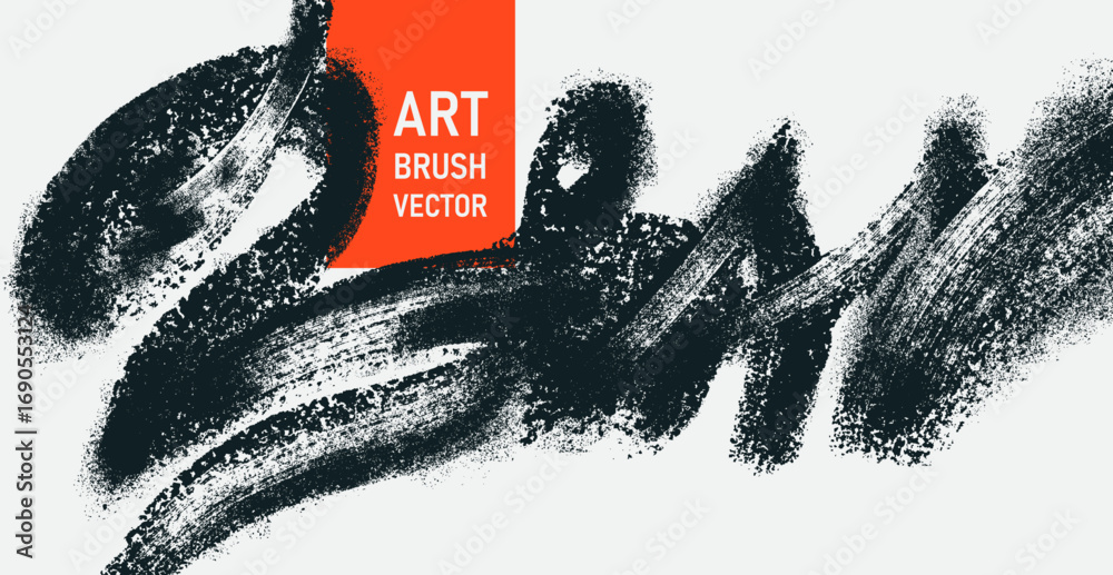 >Fototapety na wymiar>Wybrane motywy - zobacz więcej !>Lew>Grainy textured black grunge brush stroke with spray effect. Art bold vintage zigzag line, rough distressed hand drawn banner, thick painted texture background. Isolated vector artistic bold strokes.