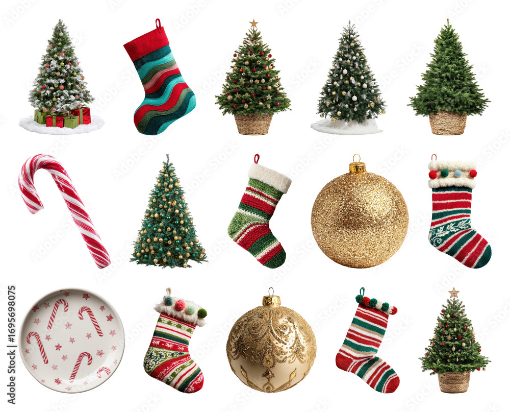 Fototapeta na wymiar - PNG Festive Christmas decorations collection, element set on transparent background.