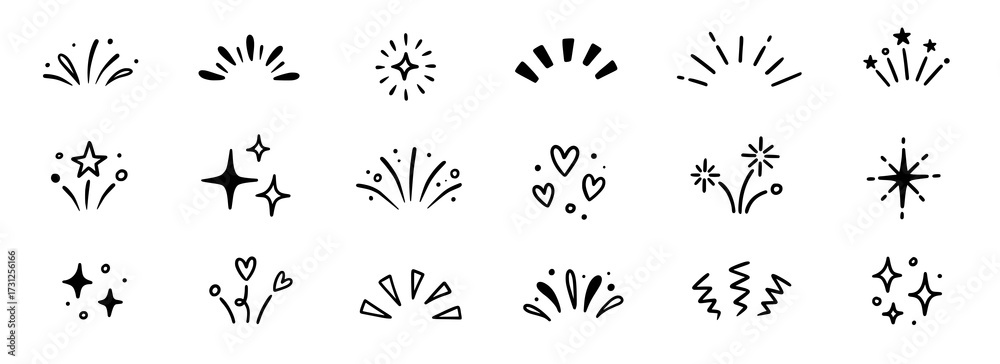 >Fototapety na wymiar>Wybrane motywy - zobacz więcej !>Lew>Line icon ray, confetti element set. Starburst line art with hand drawn glitter spark, pop icon shapes and surprise emphasis elements. Decorative sketch style for a sunshine ray vector illustration
