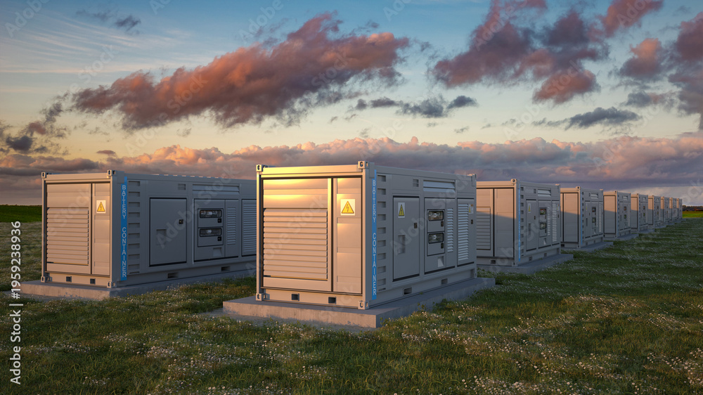 Fototapeta na wymiar - Battery Energy Storage System integrated into the natural environment.