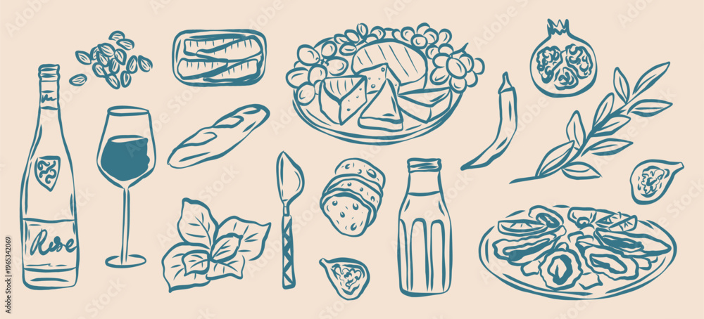 Fototapeta na wymiar - Flat vector doodle mediterranean food collection.