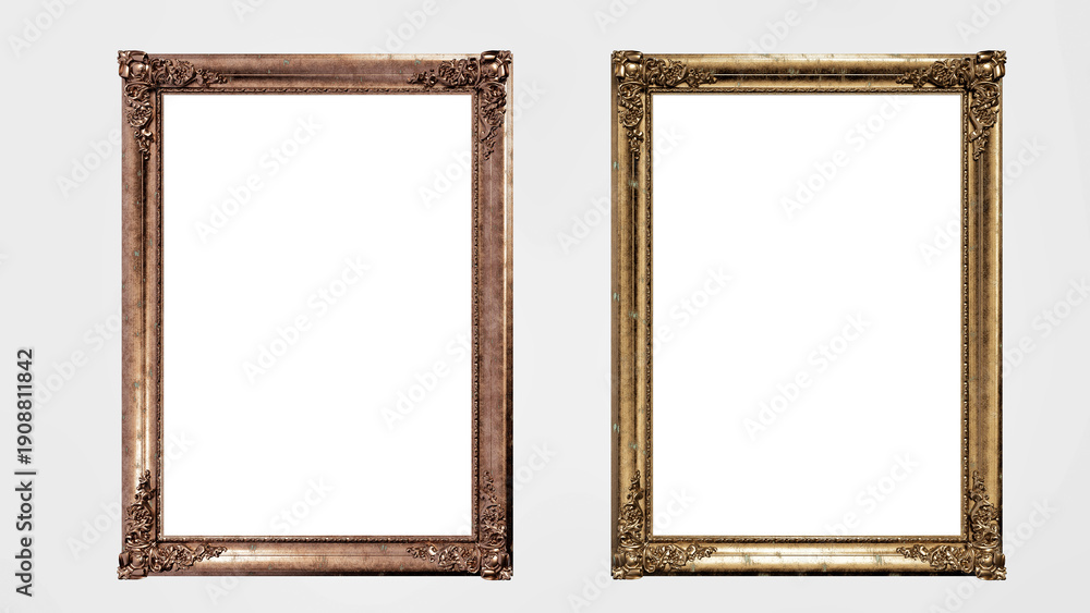 Fototapeta na wymiar - Elegant gold and copper ornate picture frames for luxury interior..